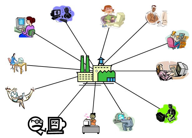 Muitas atividades burocráticas e informativas que requerem a presença física do funcionário nas repartições da empresa, podem ser fornecidas através de um site da Internet de sua empresa, que pode ser acessado pelo empregado e sua família fora do local de trabalho.